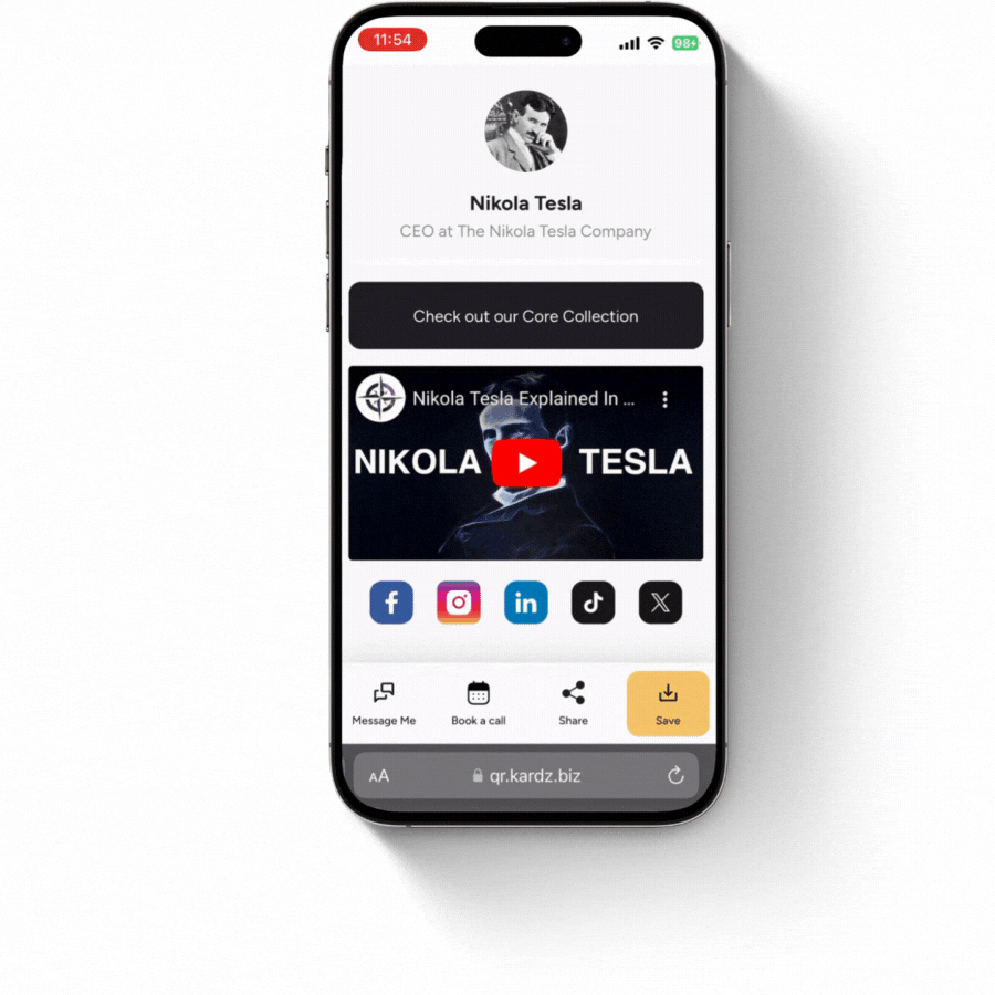 • With NFC technology, tapping your Kardz on any smartphone will automatically pop-up a link that displays your Digital Profile in seconds.